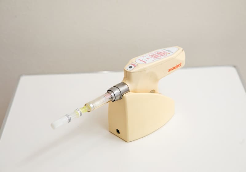 麻酔注射が苦手、という方にも安心です。極細の針で、刺さる瞬間の痛みが少なく、麻酔後も圧力を調整しながら注入するため、痛みの少ない麻酔ができます。